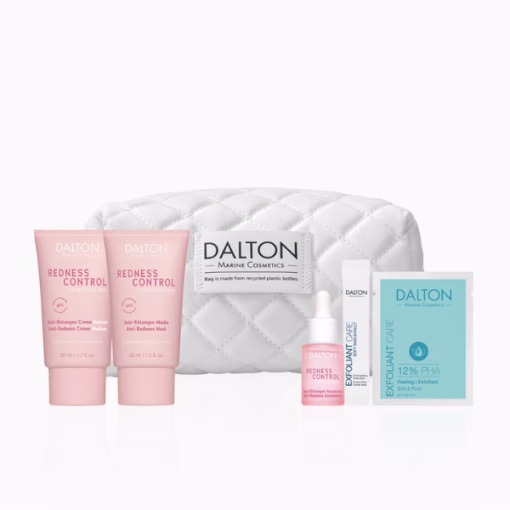 Rešitev za zmanjšanje rdečice, vidnih kapilar in tudi kuperoze (zgodnje oblike rozacee) je skrbno zasnovana rutina, ki krepi kapilare in vezivno tkivo ter hkrati kožo pomirja. Set REDNESS CONTROL združuje izbrane izdelke za nego kože, nagnjene h kuperozi in rozacei. Anti-Redness Cream Medium kožo intenzivno vlaži in pomaga preprečevati vnetja. Anti-Redness Concentrate krepi kožo in zmanjšuje pojav razširjenih kapilar, ki se kažejo kot tanke rdeče žilice. Njegova lahka, nemastna formula brez olj je primerna tudi za kožo, nagnjeno k rozacei. Pomirjujoča maska blaži razdraženo, občutljivo kožo in vidno zmanjšuje rdečico. Redness Control Starter Kit vsebuje te tri izdelke v polni velikosti ter vzorca Enzyme Peel in PHA pilinga.