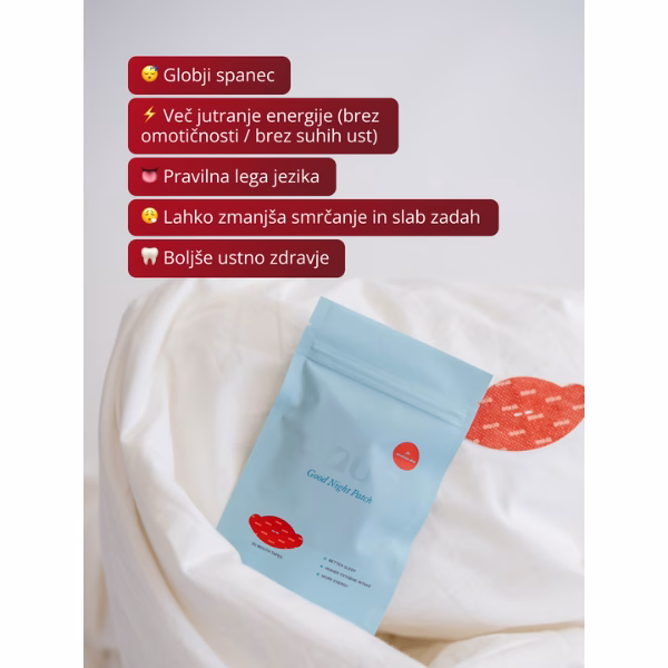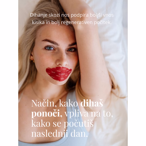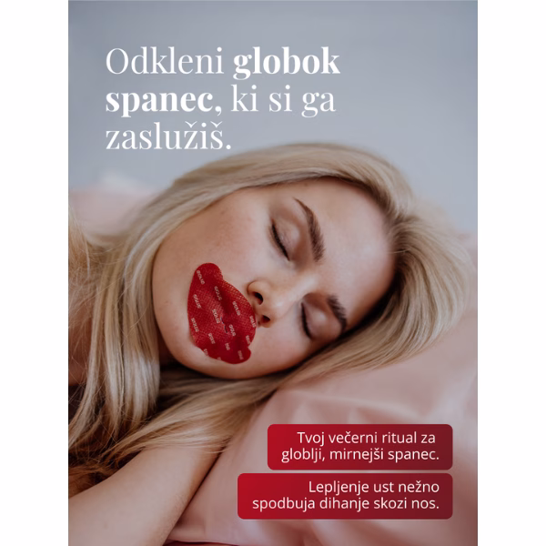 Lepljenje ust med spanjem nežno spodbuja dihanje skozi nos, izboljšuje pretok kisika in pomaga doseči globlji nočni počitek, ki si ga zaslužiš.