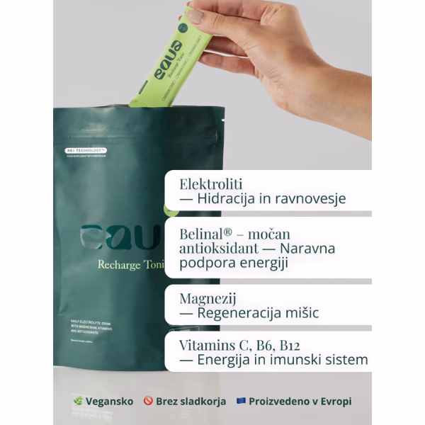 - BOLJŠA HIDRACIJA – Opazila boš globljo in dolgotrajnejšo hidracijo, saj Recharge tonik nadomešča ključne elektrolite, kot so magnezij, kalij in natrij, kar telesu pomaga hitreje vpijati vodo in ohranjati ravnovesje skozi ves dan.